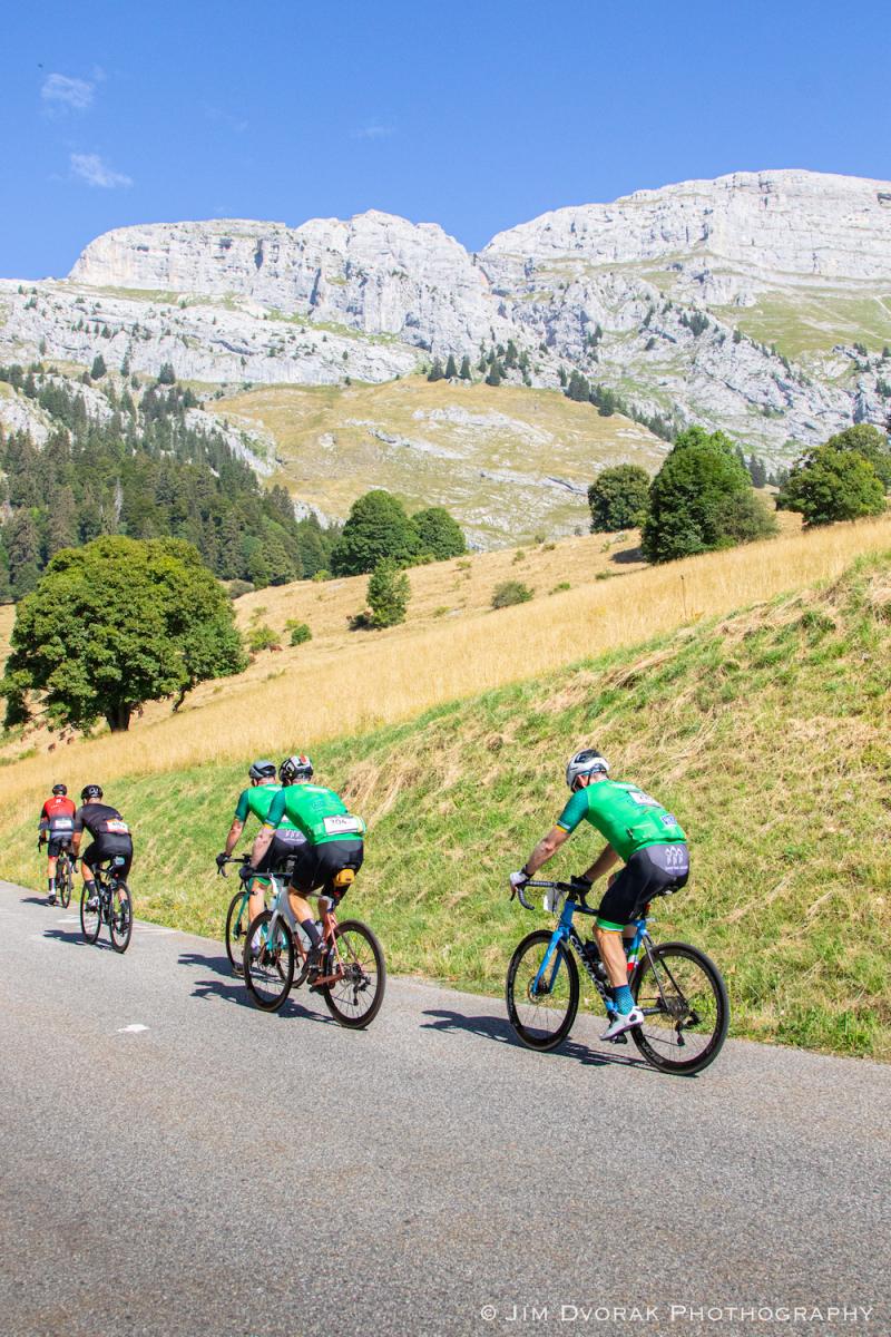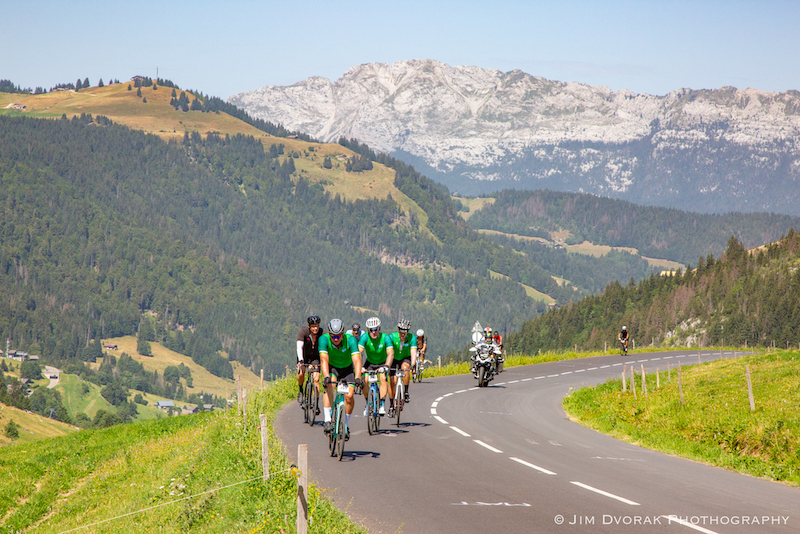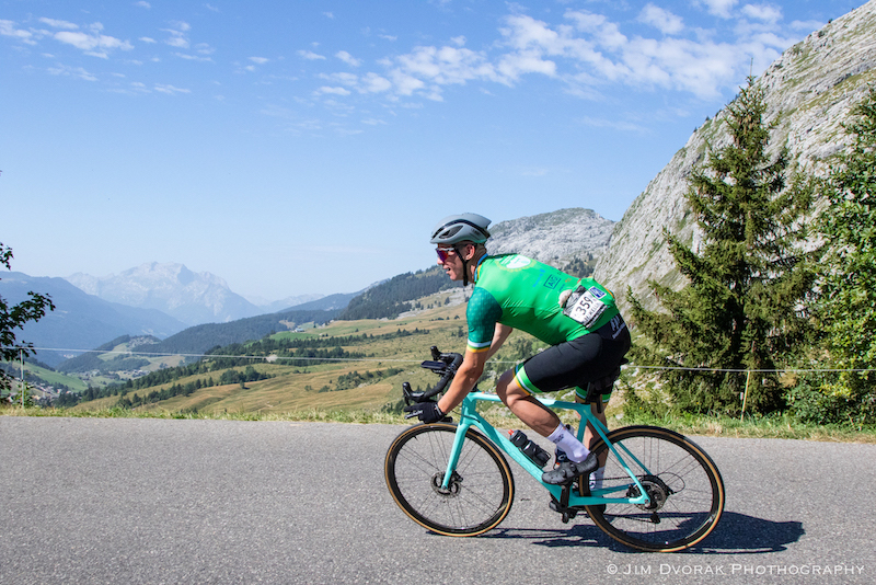 The first day of the race proved to be slightly warmer than originally anticipated. That didn’t deter the brothers, who stuck to their plan of taking the first stage easy and staying together. The scenery was picturesque as they made the climb to the top of Colombiere, through Aravis and plateaued for the finish back in Megeve.